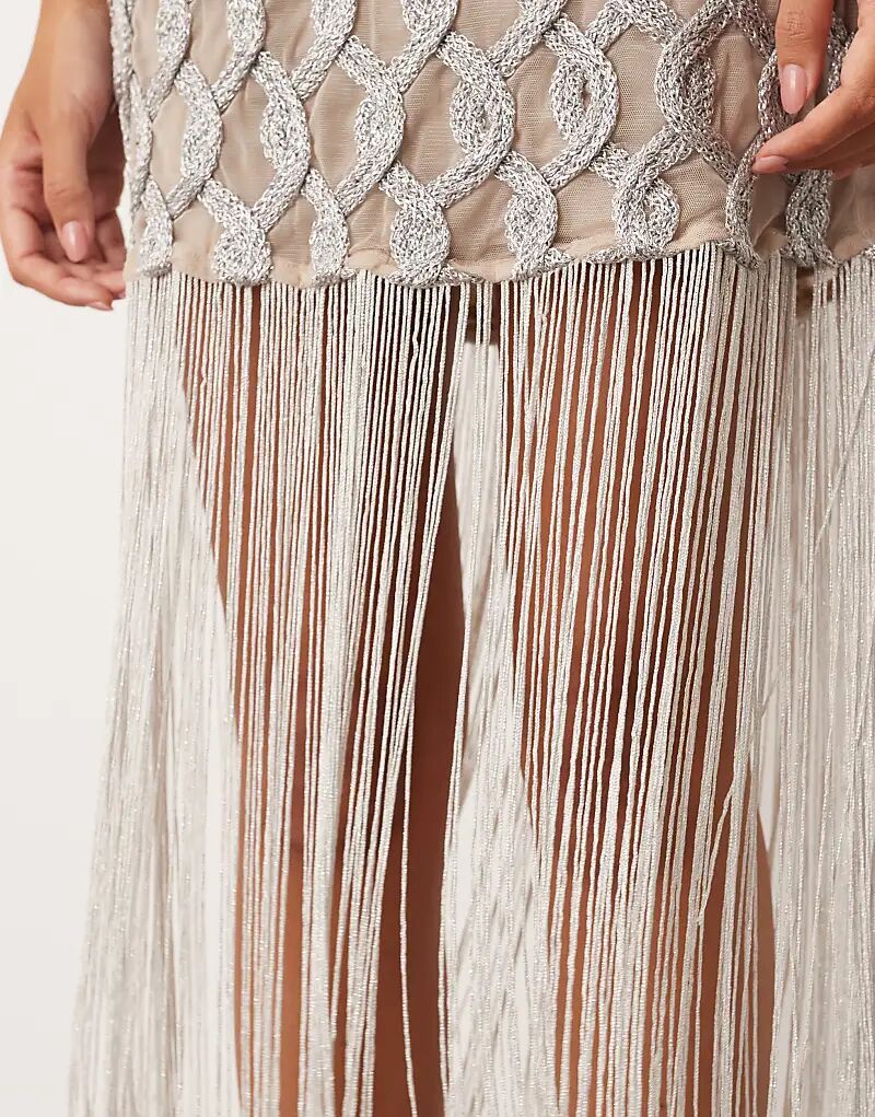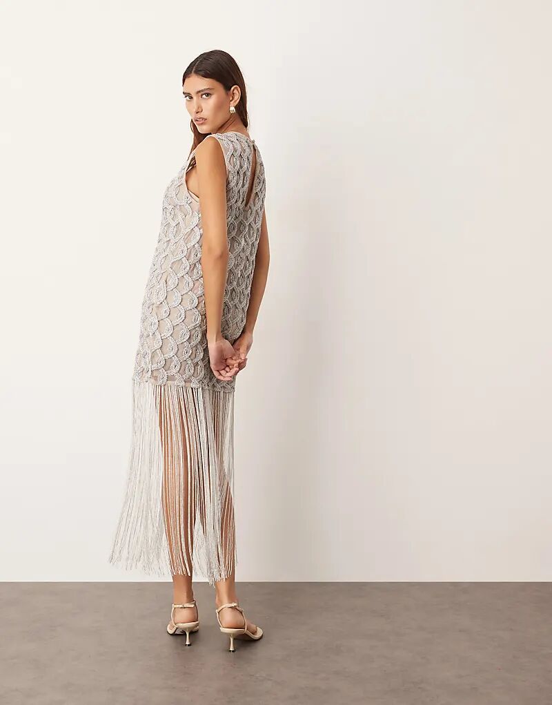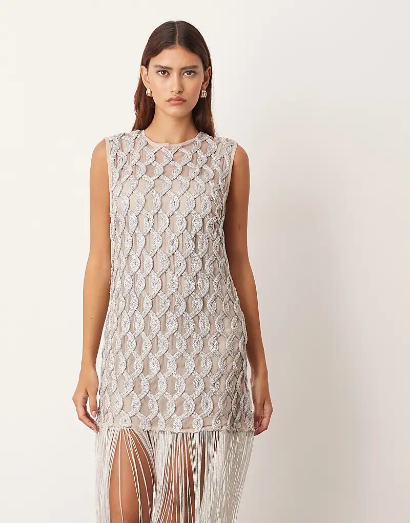 Мини-платье ARRANGE в сетку с бахромой по низу, металлик