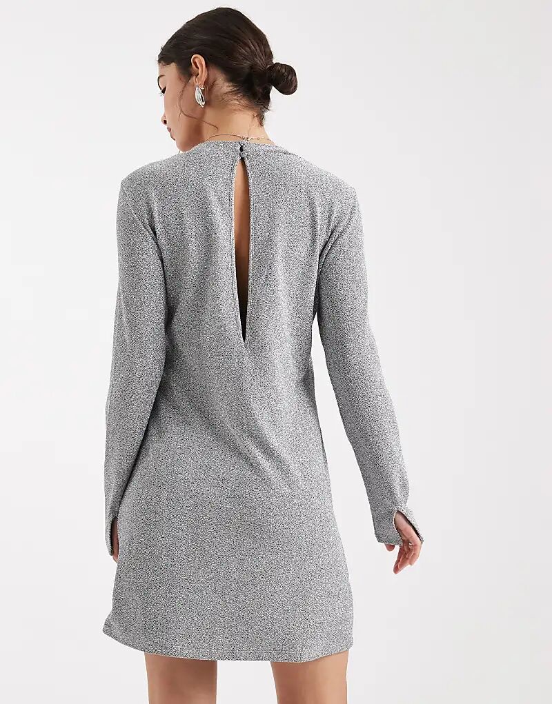Мини-платье с длинными рукавами и блестками серебристого цвета