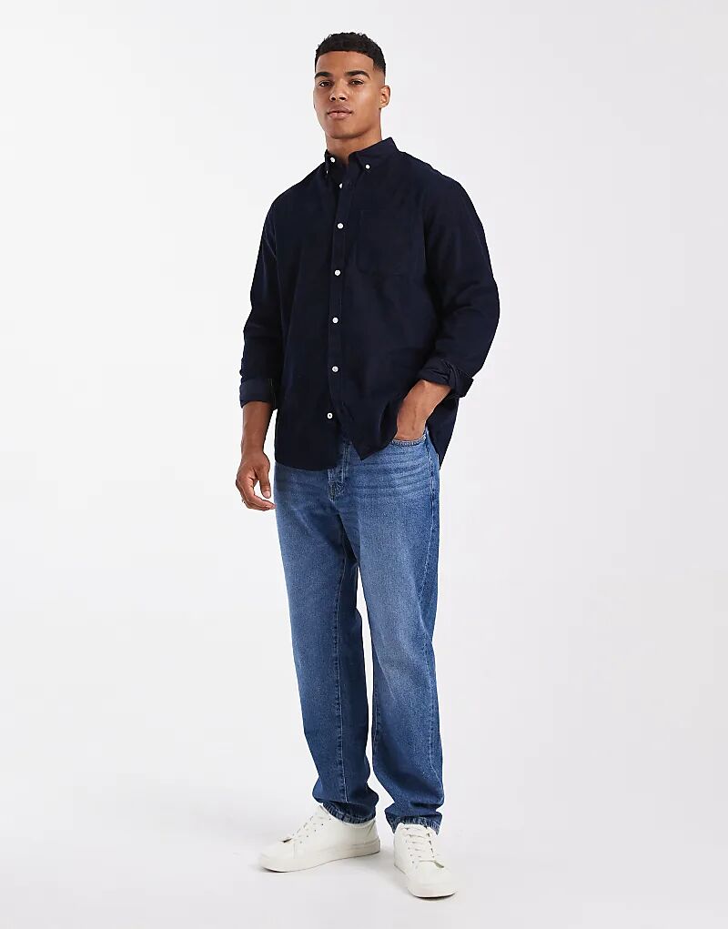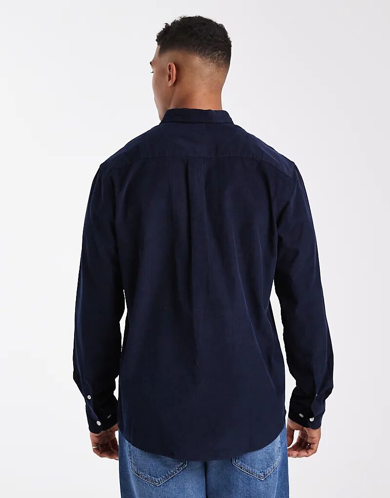 Рубашка вельвета Jack & Jones с карманом темно-синего цвета