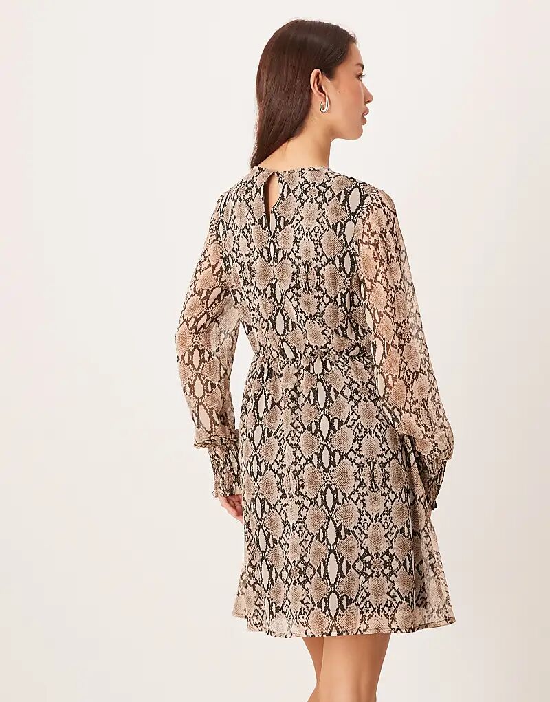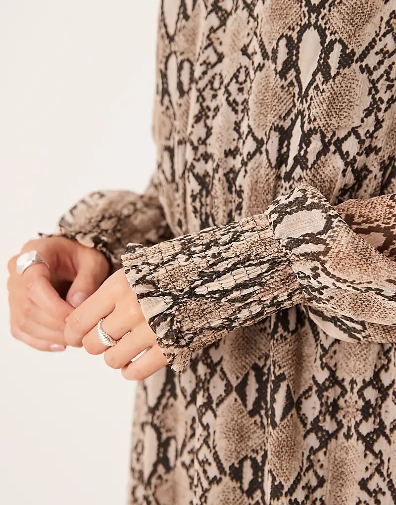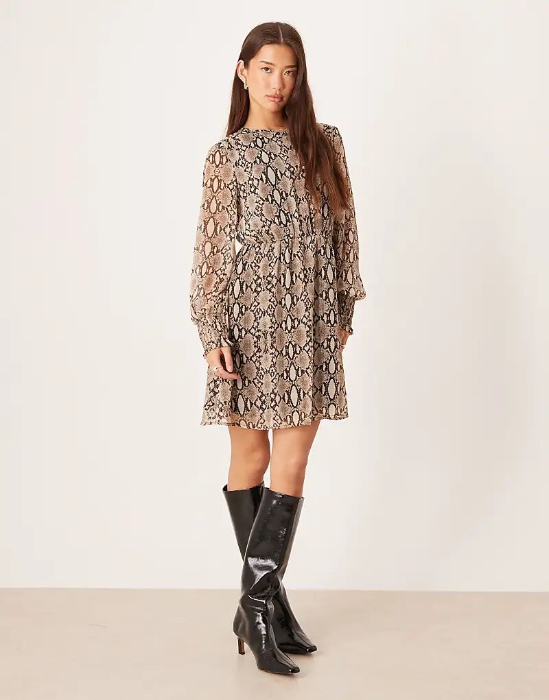 Мини-платье Vila с длинными рукавами и нейтральным змеиным принтом