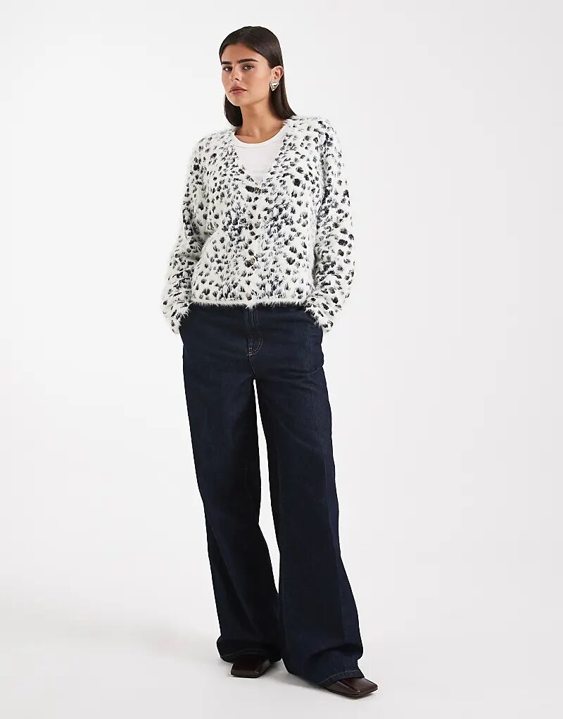 COLLUSION пушистый вязаный кардиган с принтом снежного барса
