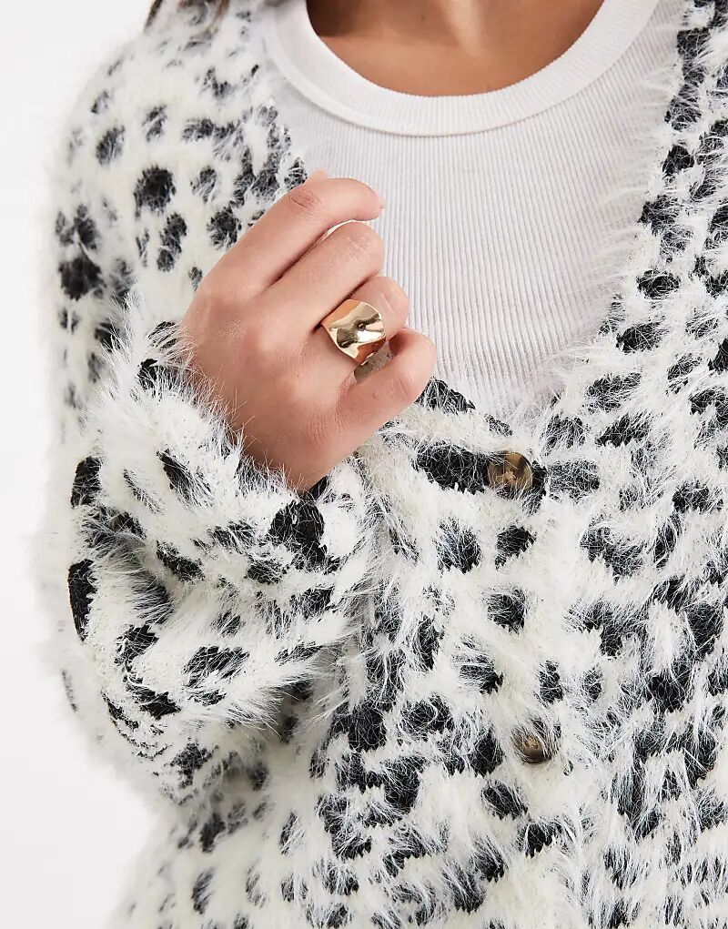 COLLUSION пушистый вязаный кардиган с принтом снежного барса 6 036₽