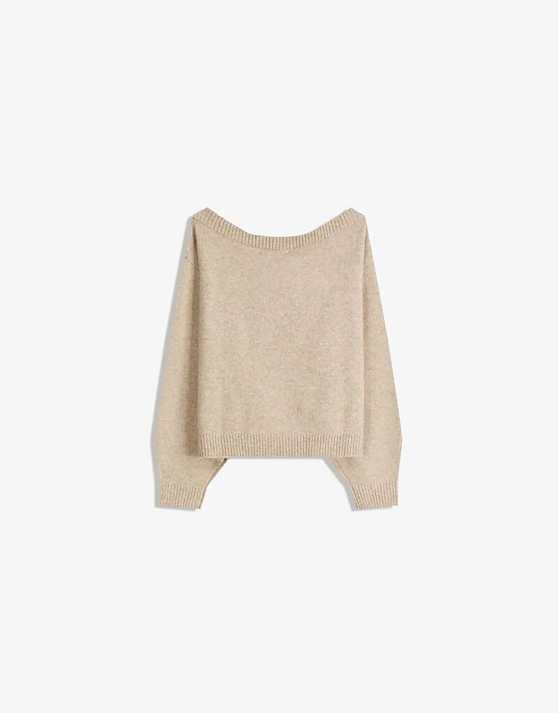 Ребристый свитер Bershka с вырезом-бардо в цвете «камень» 4 218₽