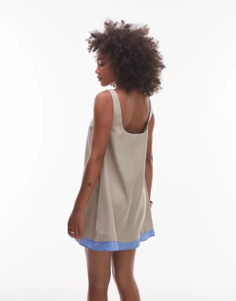 Мини-платье ASOS DESIGN A-силуэта с контрастным тканым подолом в каменном цвете