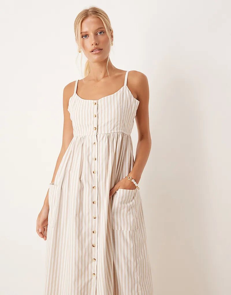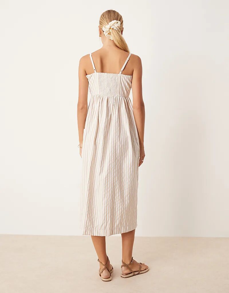 Платье миди Brave Soul Stripe на пуговицах в каменном цвете