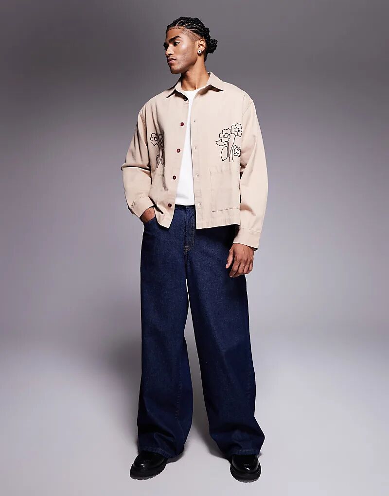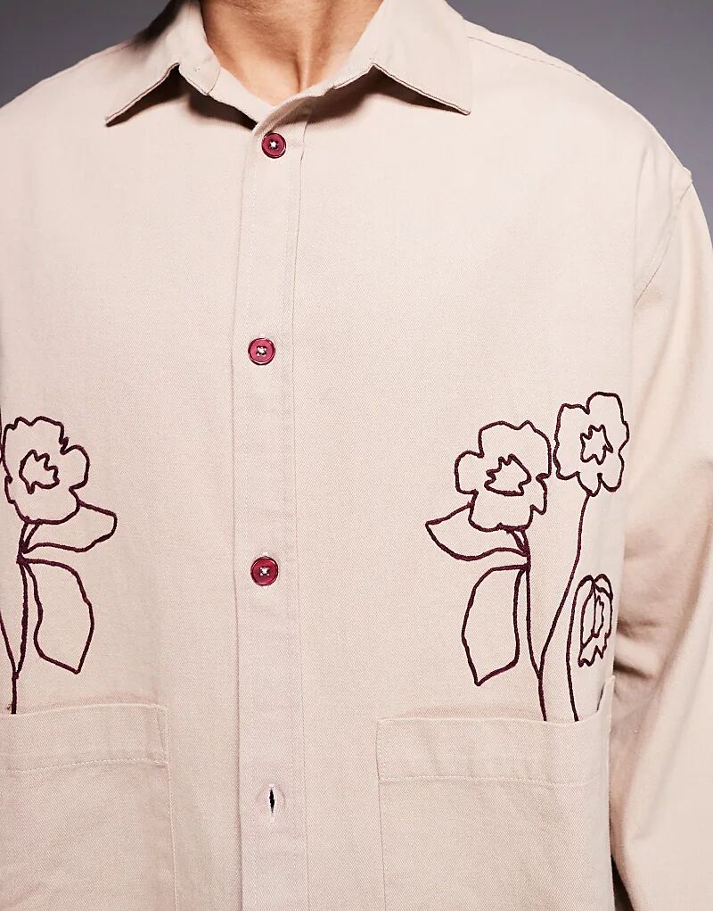 Рубашка ASOS DESIGN с вышивкой и двойными карманами в камне
