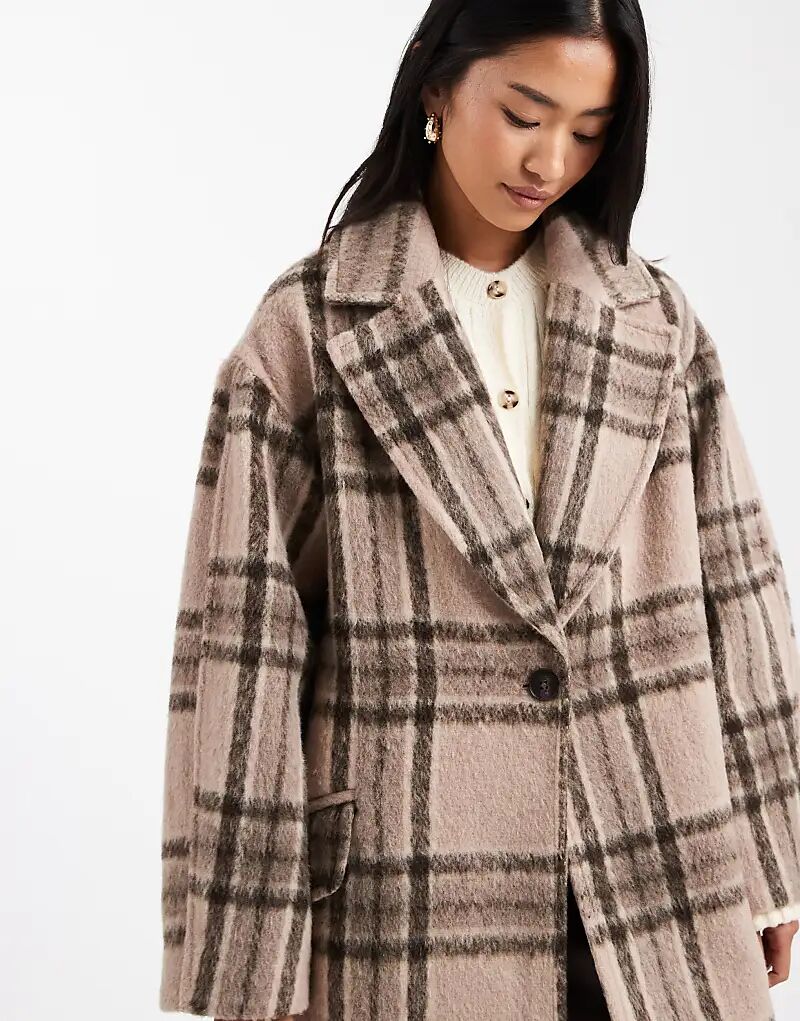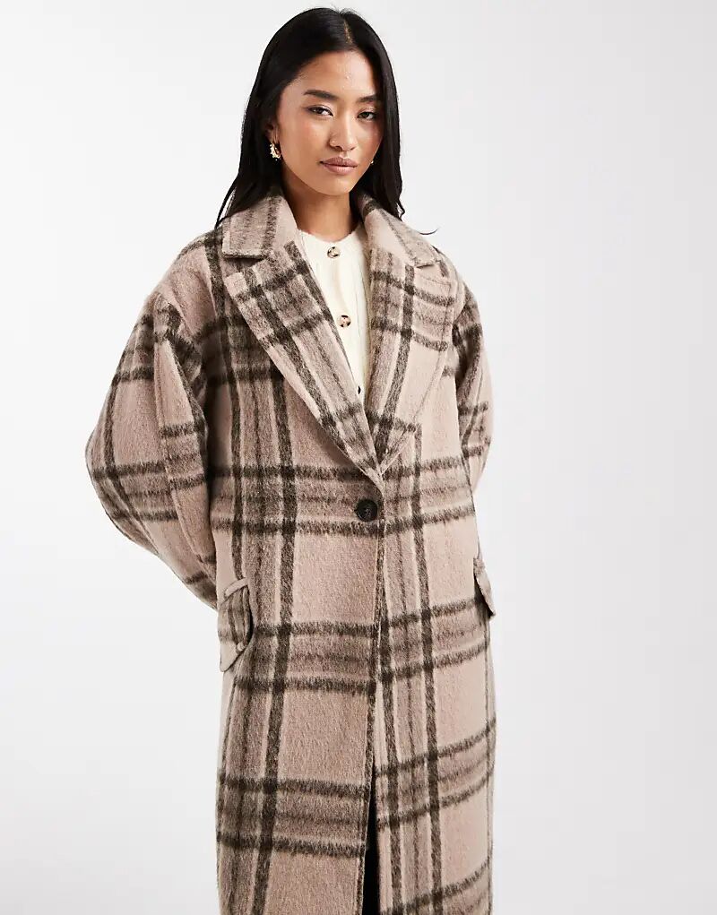 Пальто в клетку ASOS DESIGN с начесом и строгим кроем