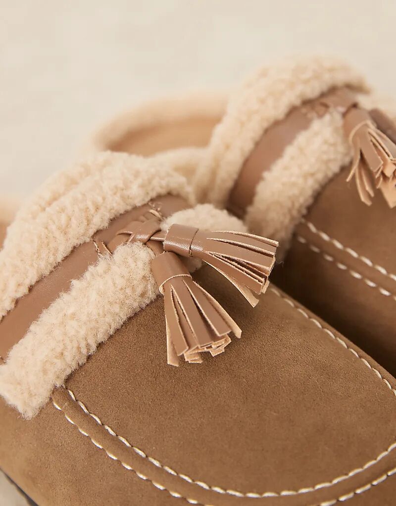 Гламурные пушистые мюли в серо-коричневом цвете