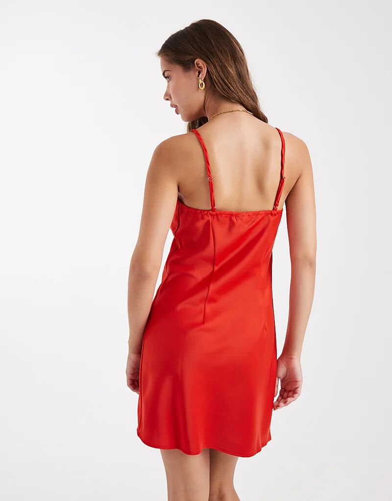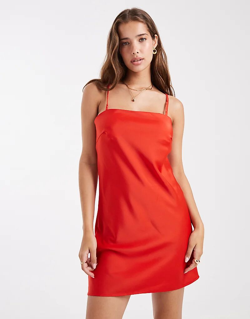 Мини-платье Pieces из атласа с лифом красного цвета 3 383₽