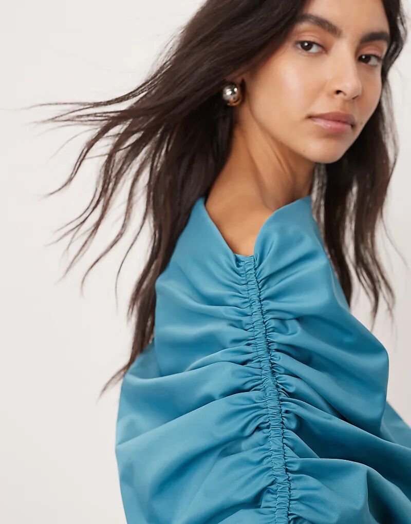 Мини-платье ASOS EDITION с текстурированными сборками в бирюзовом цвете 5 973₽