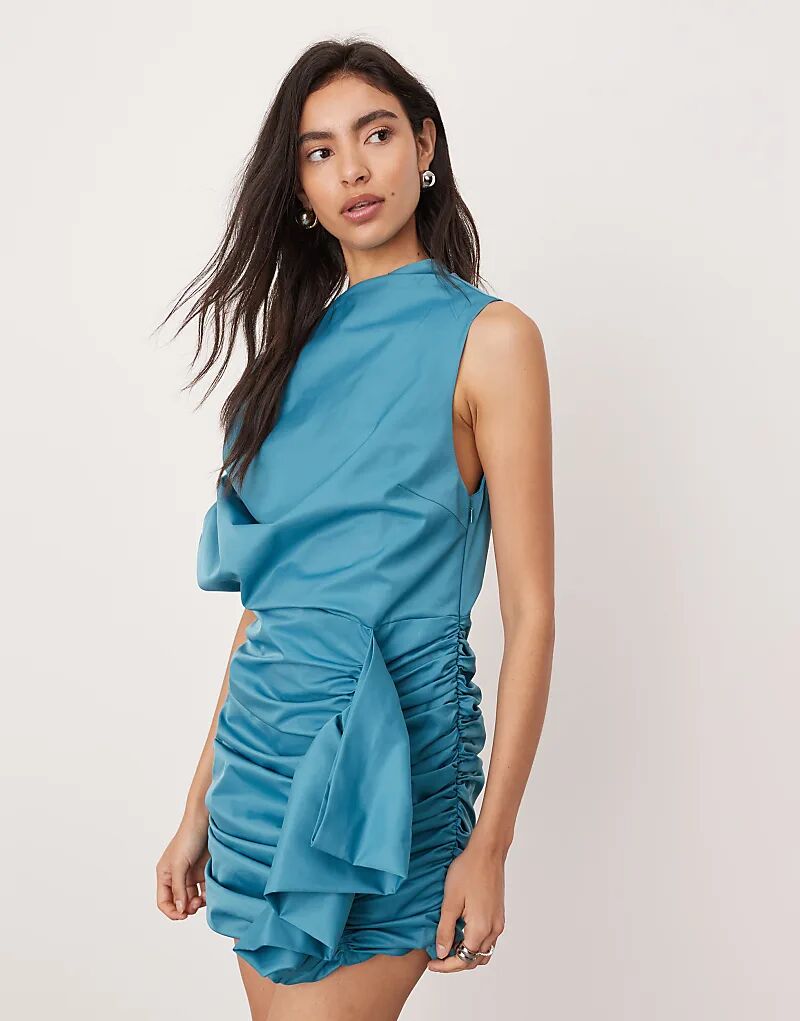 Мини-платье ASOS EDITION с текстурированными сборками в бирюзовом цвете