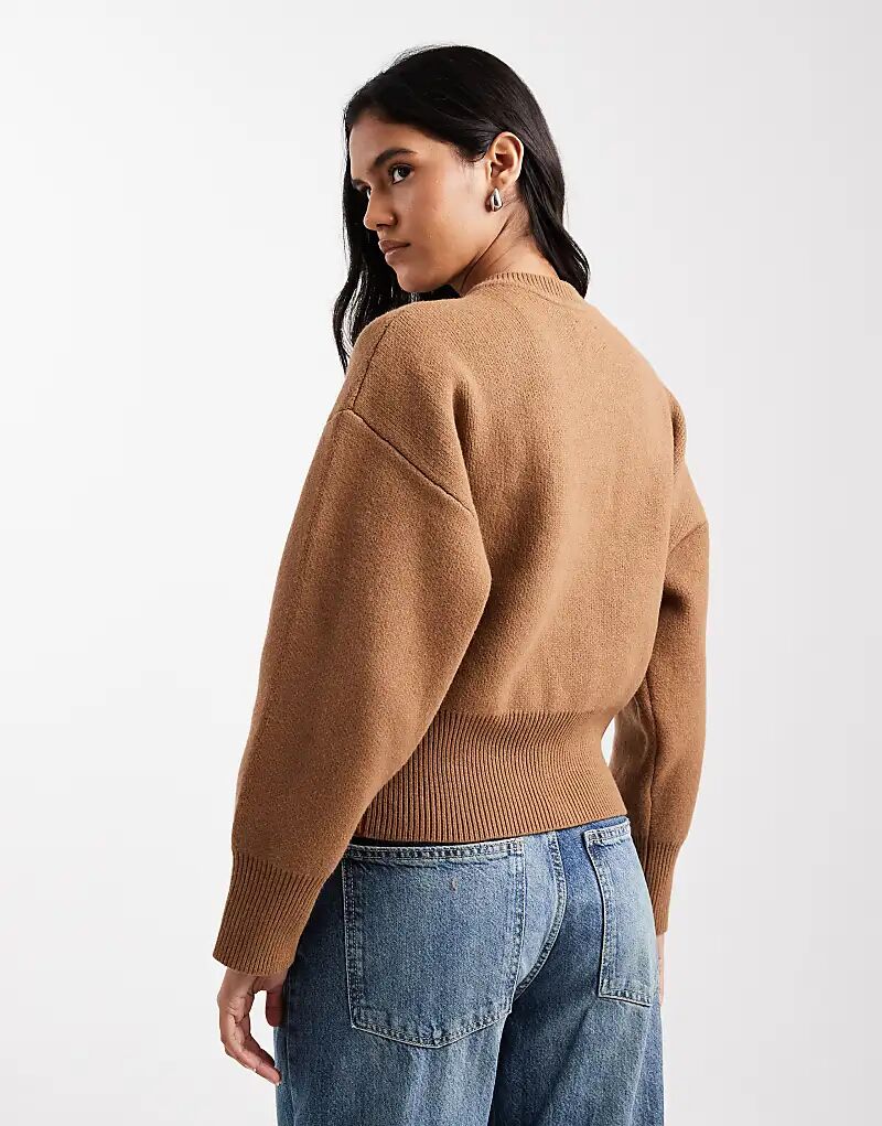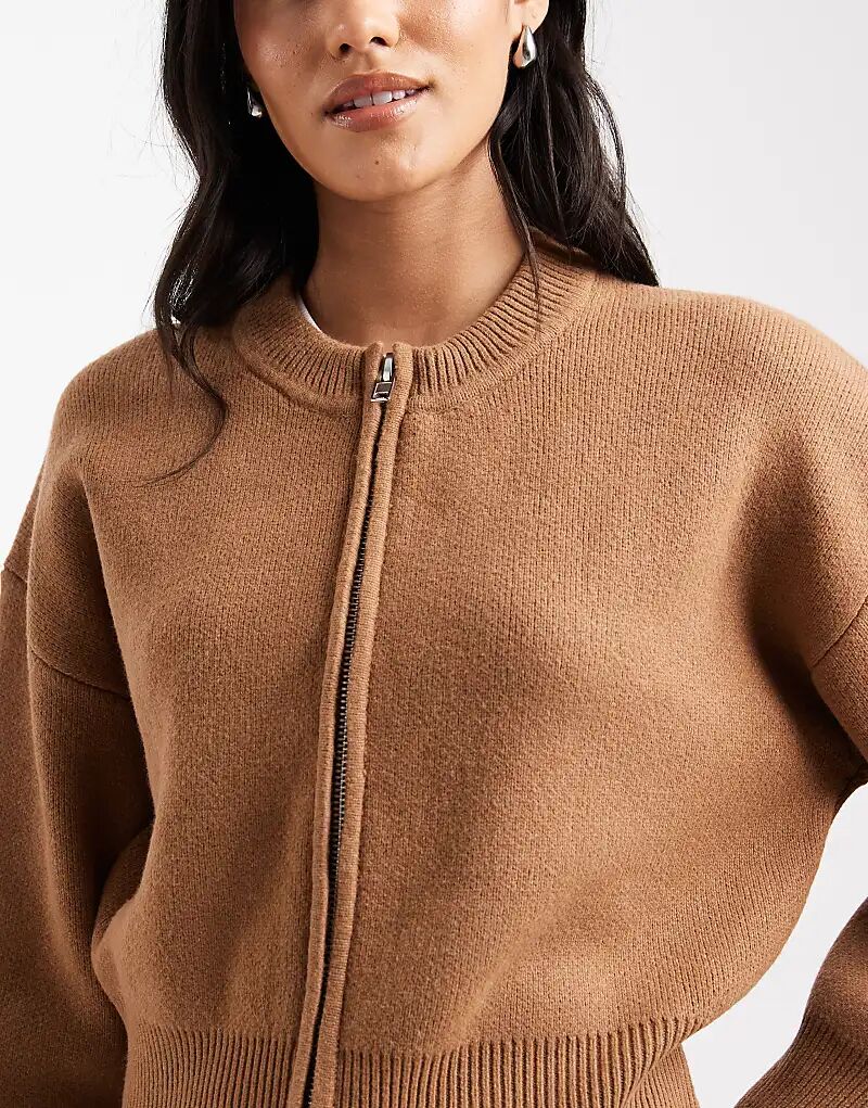 Вязаный джемпер ASOS DESIGN цвета ириски на молнии