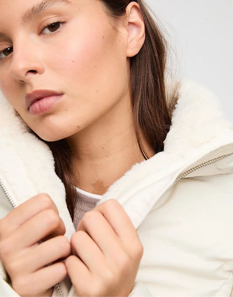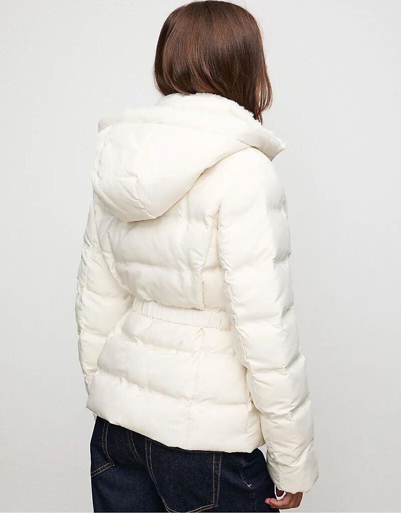 Пуховик Stradivarius с капюшоном и поясом в цвете ванили 11 445₽