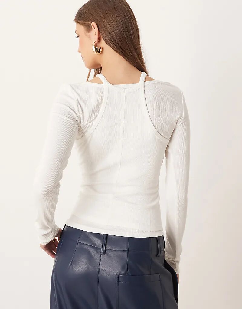 Белый лонгслив с длинными рукавами и накладным элементом Mango