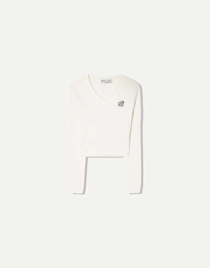 Вышитый свитер Bershka с косами белого цвета