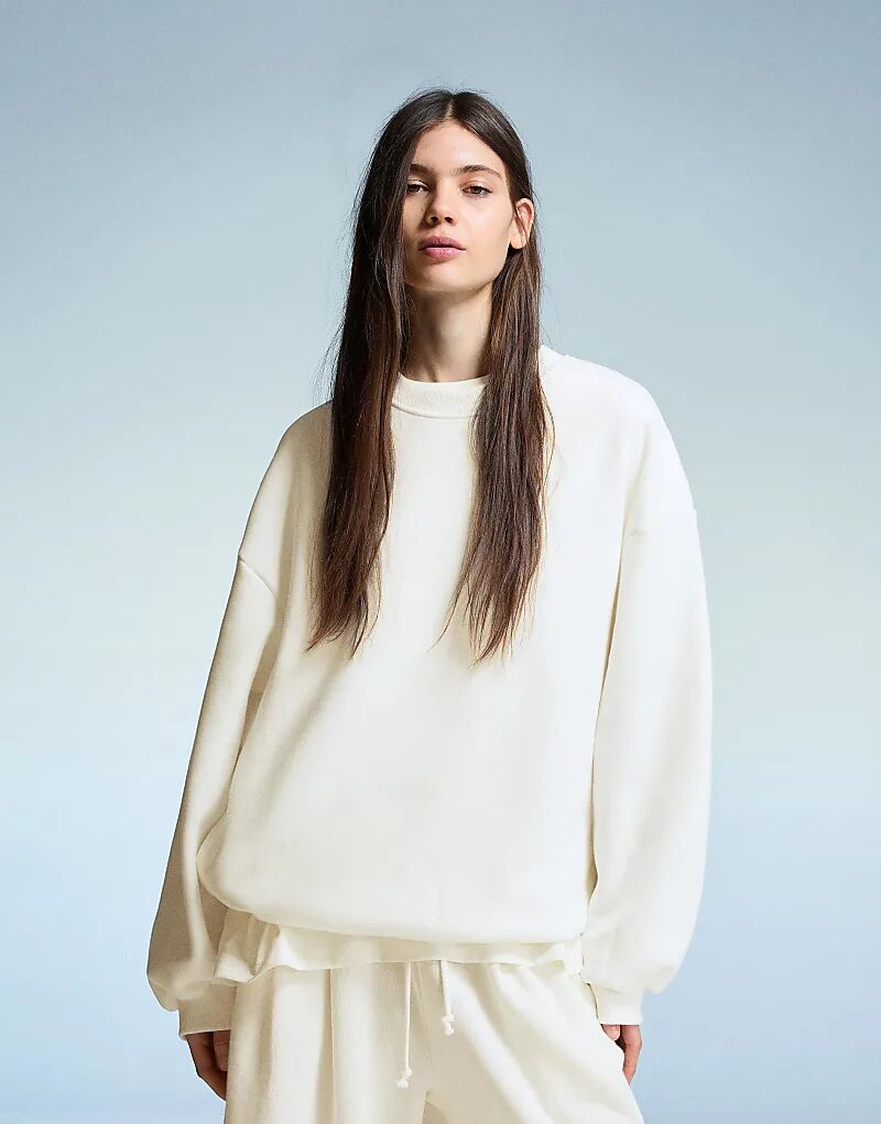 Толстовка Bershka Oversize с карманами белого цвета