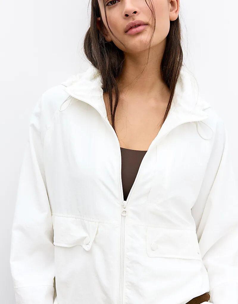 Короткая легкая куртка Pull&Bear с капюшоном белого цвета