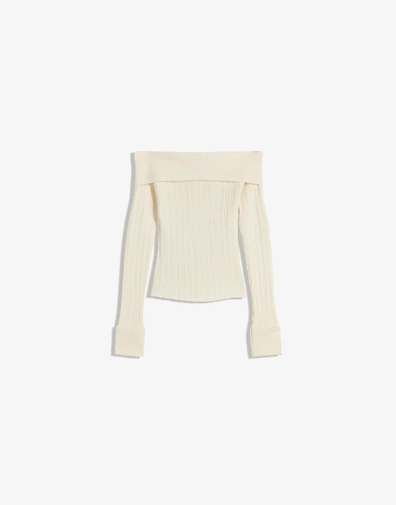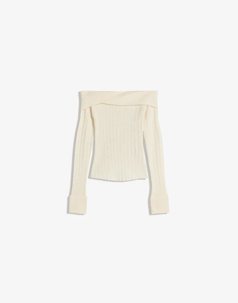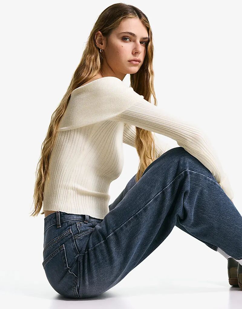 Фактурный свитер Bershka с вырезом «бардо» белого цвета