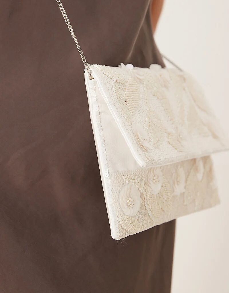 Сумка-клатч True Decadence с цветочным принтом и бисером кремового цвета