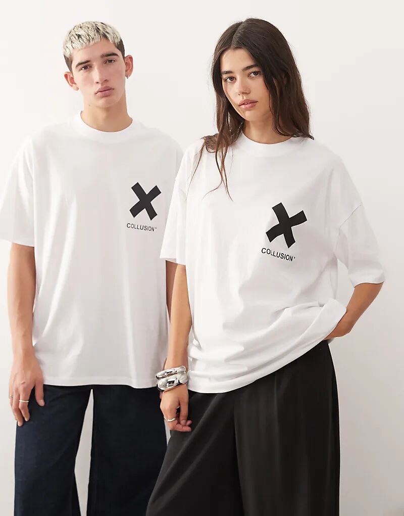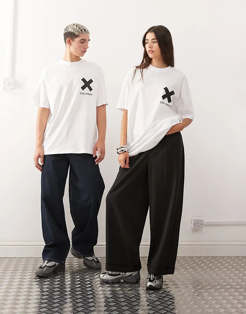 Футболка унисекс с логотипом COLLUSION белого цвета