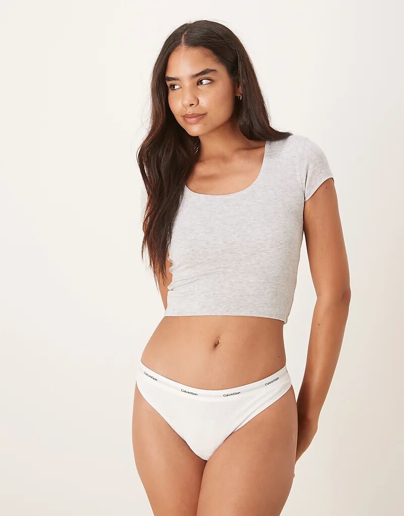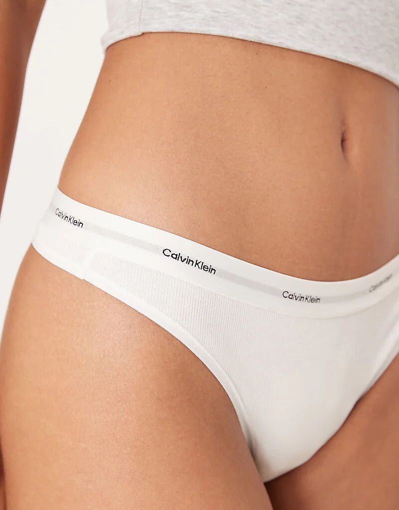 Трусики-стринги Calvin Klein из эластичного хлопка в рубчик белого цвета