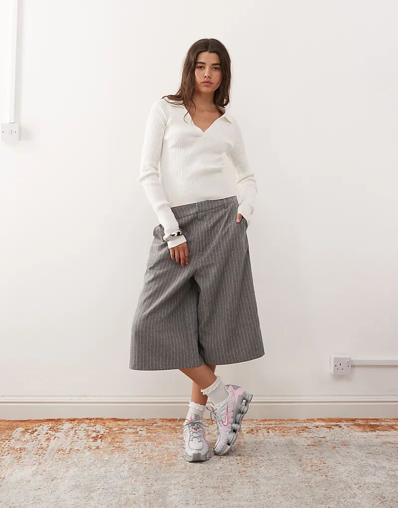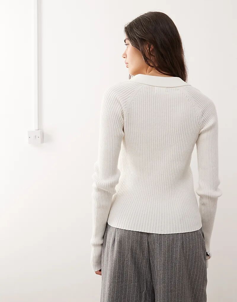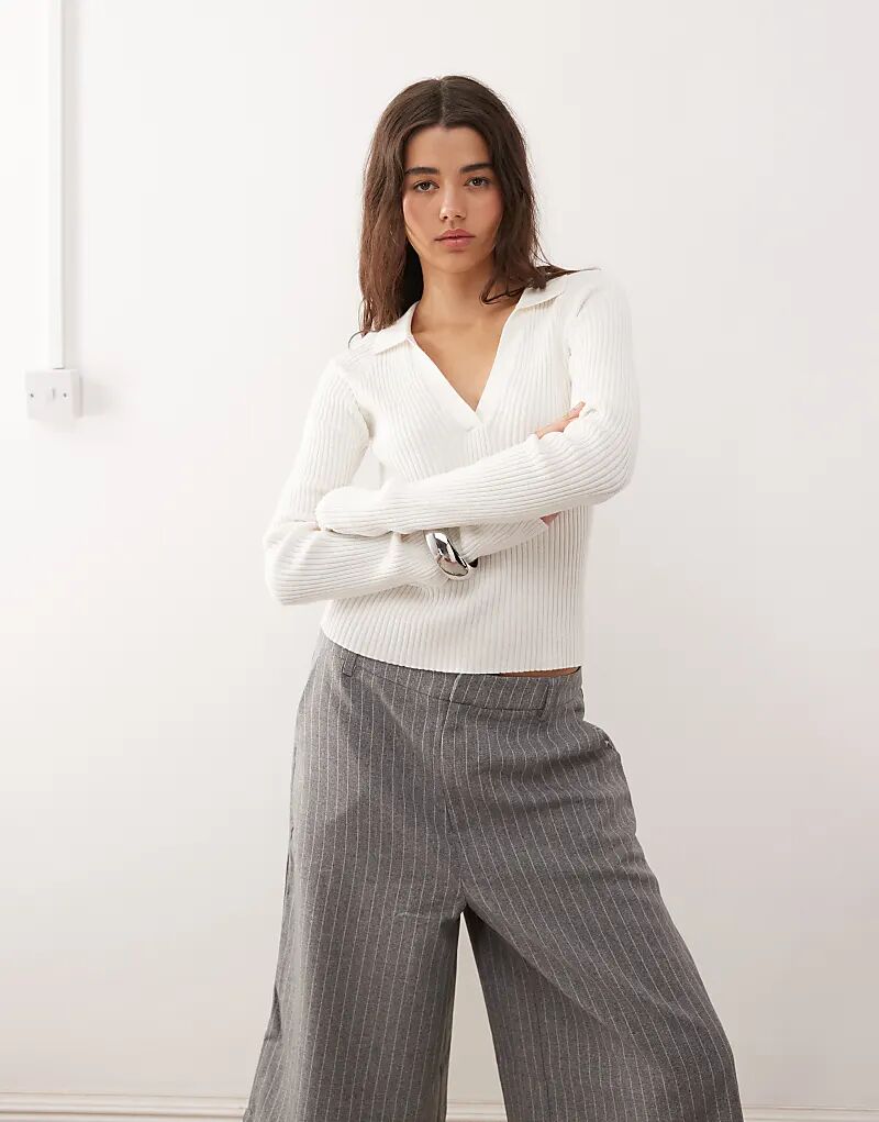 Белый топ Monki с длинными рукавами и воротником, плотная вязка в рубчик