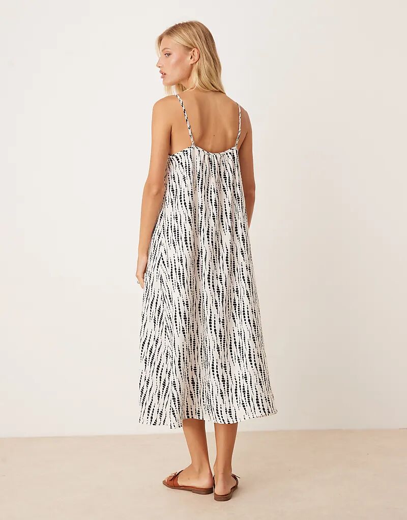 Платье миди JDY на бретелях с белым абстрактным принтом