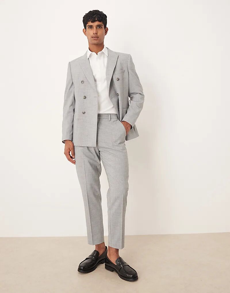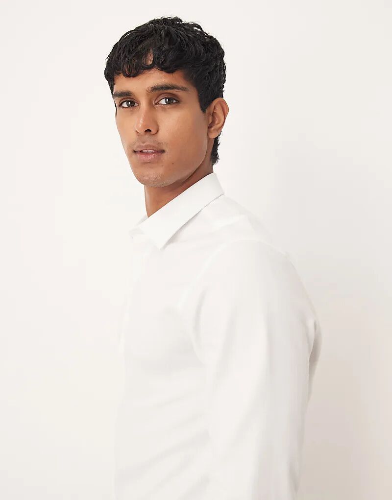 Рубашка ASOS DESIGN с узким рисунком в ёлочку белого цвета