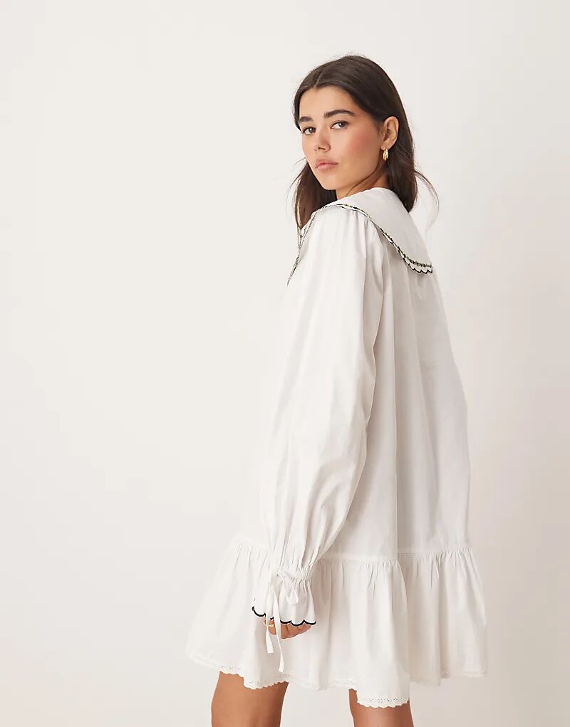 Мини-платье Miss Selfridge с вышитым воротником белого цвета