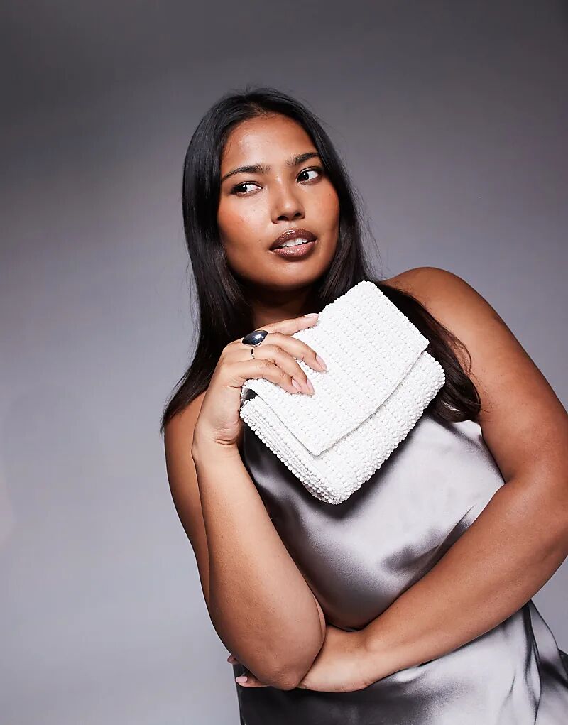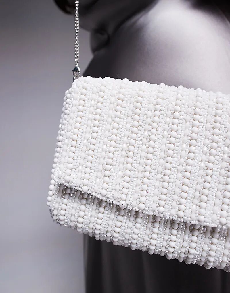 Сумка через плечо True Decadence с отделкой бисером белого цвета