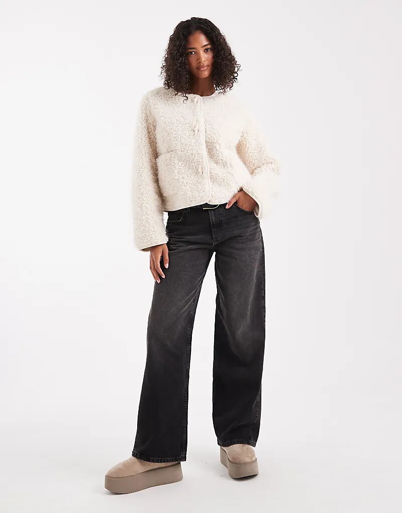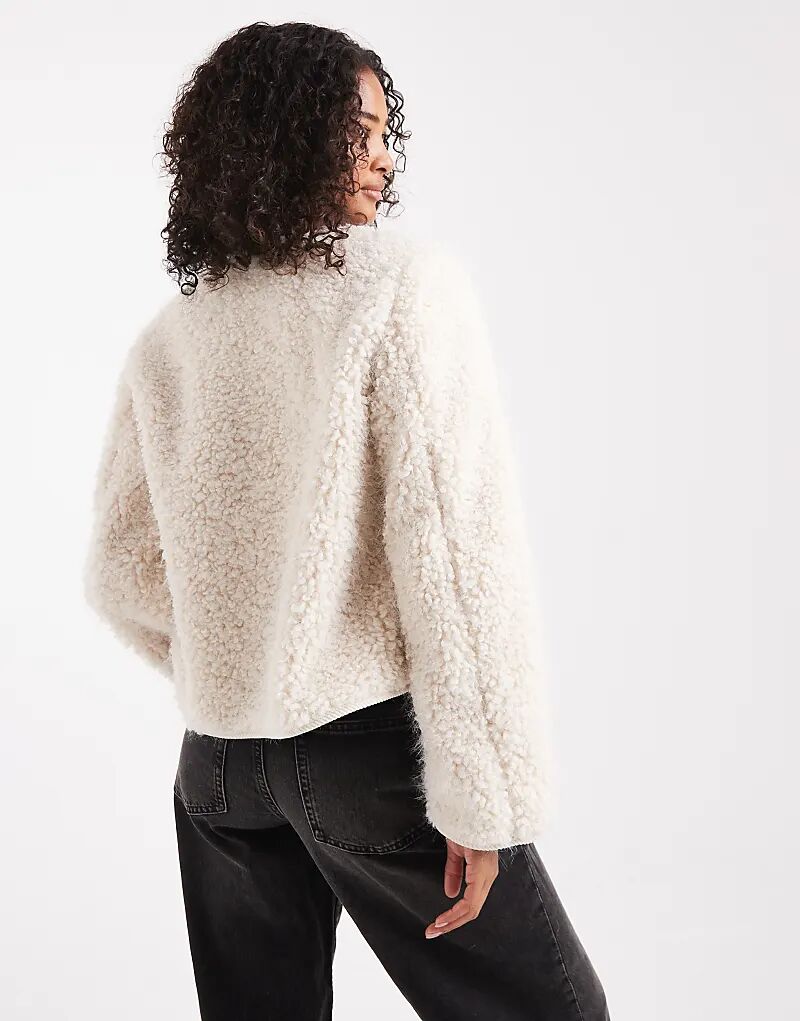 Укороченная куртка Object Premium из пушистого материала Borg Duffle в кремовом цвете