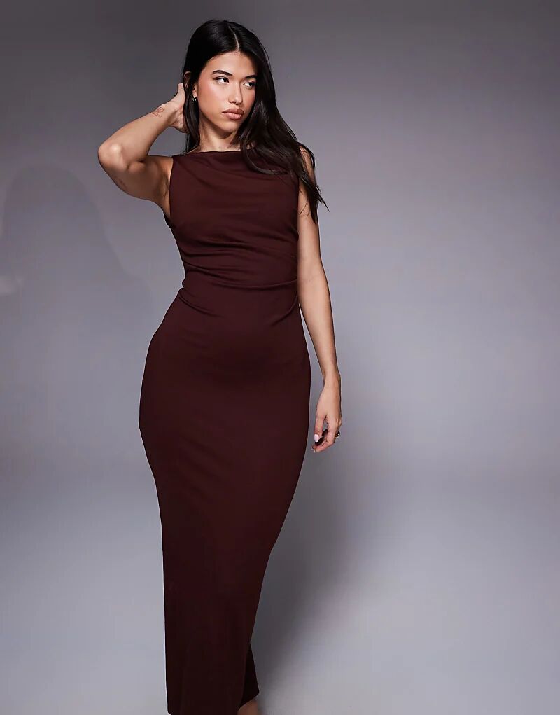 Платье миди ASOS DESIGN с косым вырезом и сборками, винного цвета 8 000₽