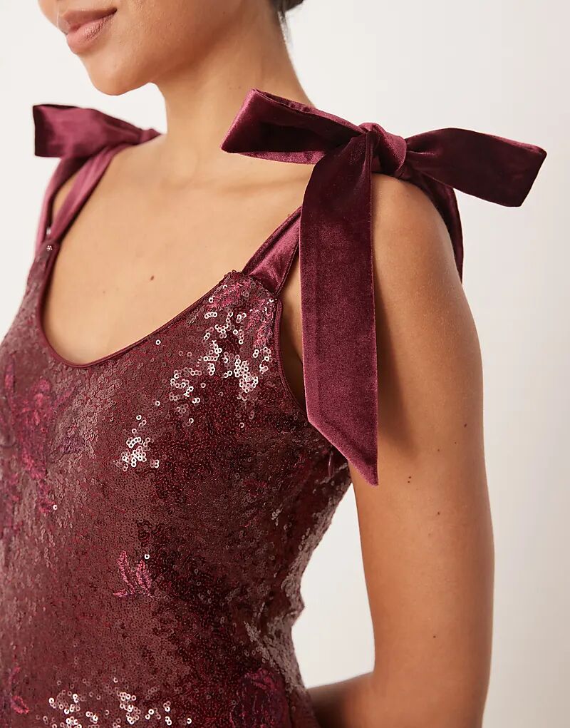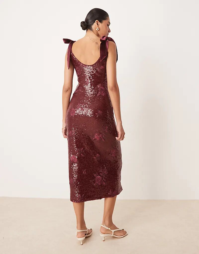 Платье мидакси Pretty Lavish с бантом на плече, цветочным принтом и пайетками