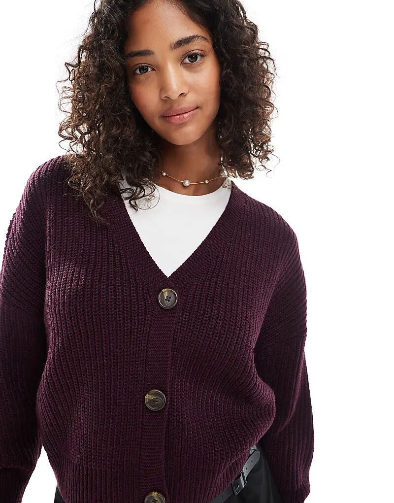 Кардиган Vero Moda в рубчик с пуговицами бордового цвета