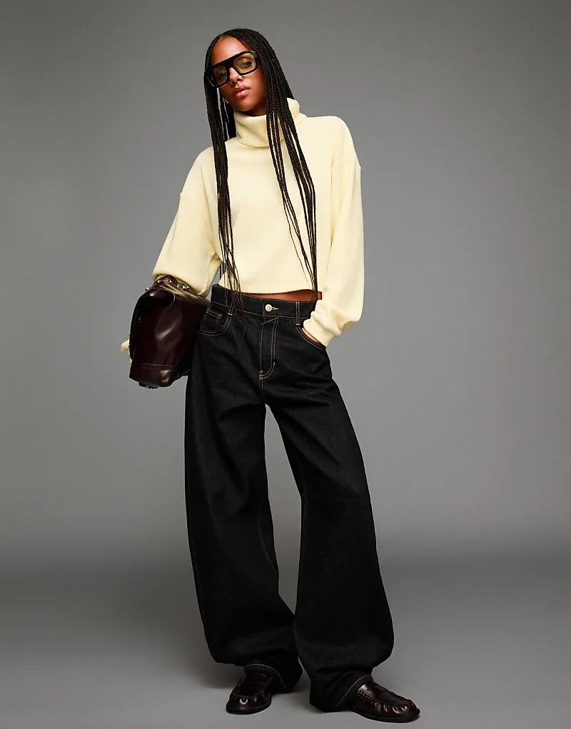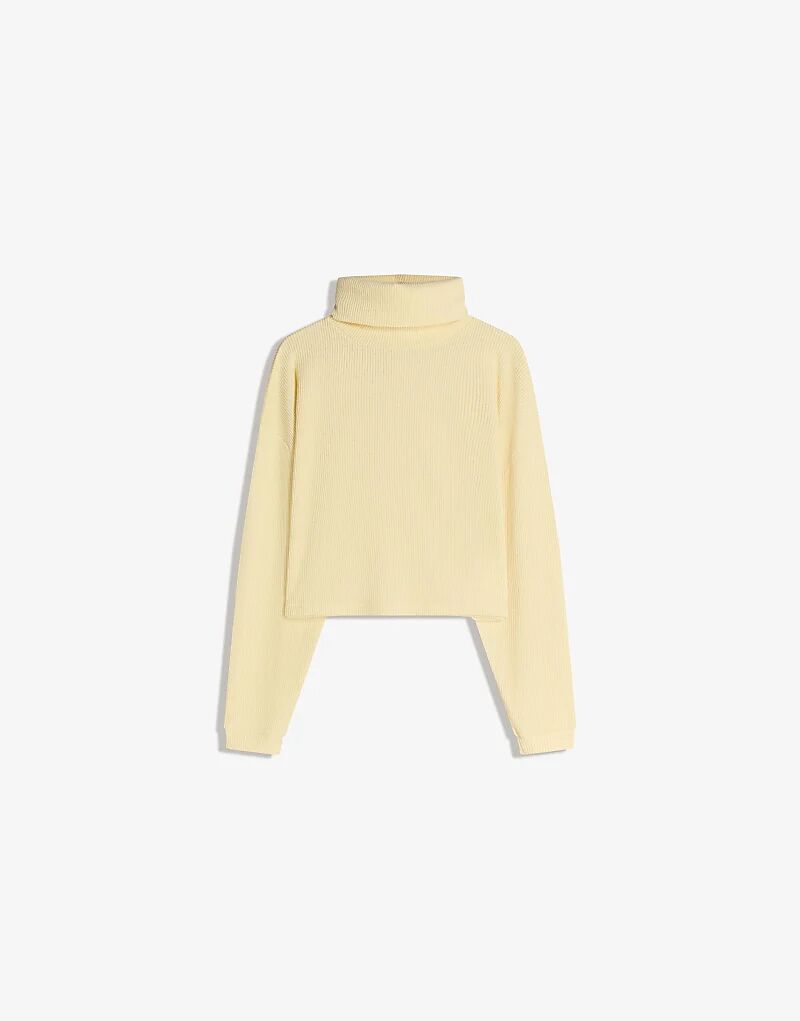 Ребристый свитер Bershka с высоким воротом желтого цвета