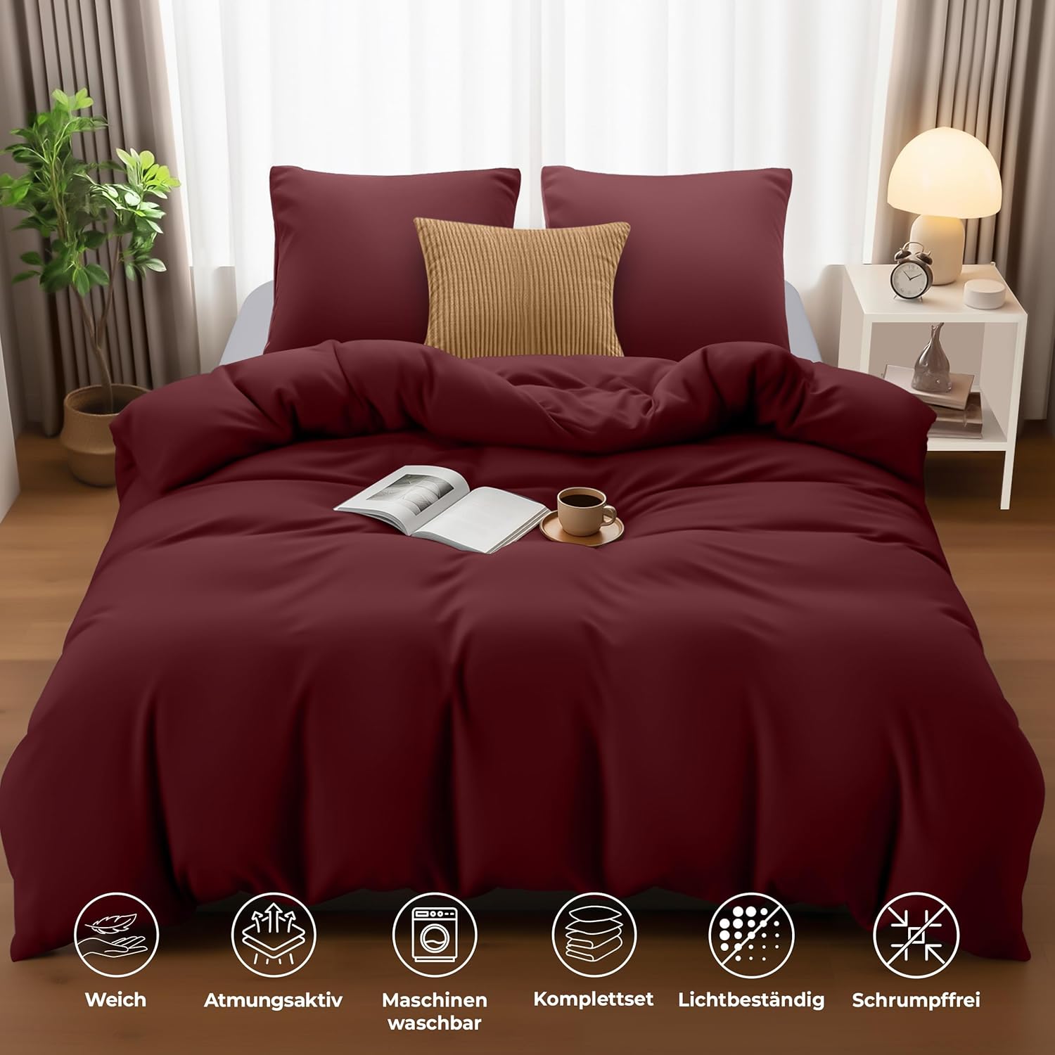 Постельное белье Utopia 200 x 200 см комплект, микрофибровый пододеяльник 200 x 200 см + 2 наволочки 80 x 80 см, бургундия