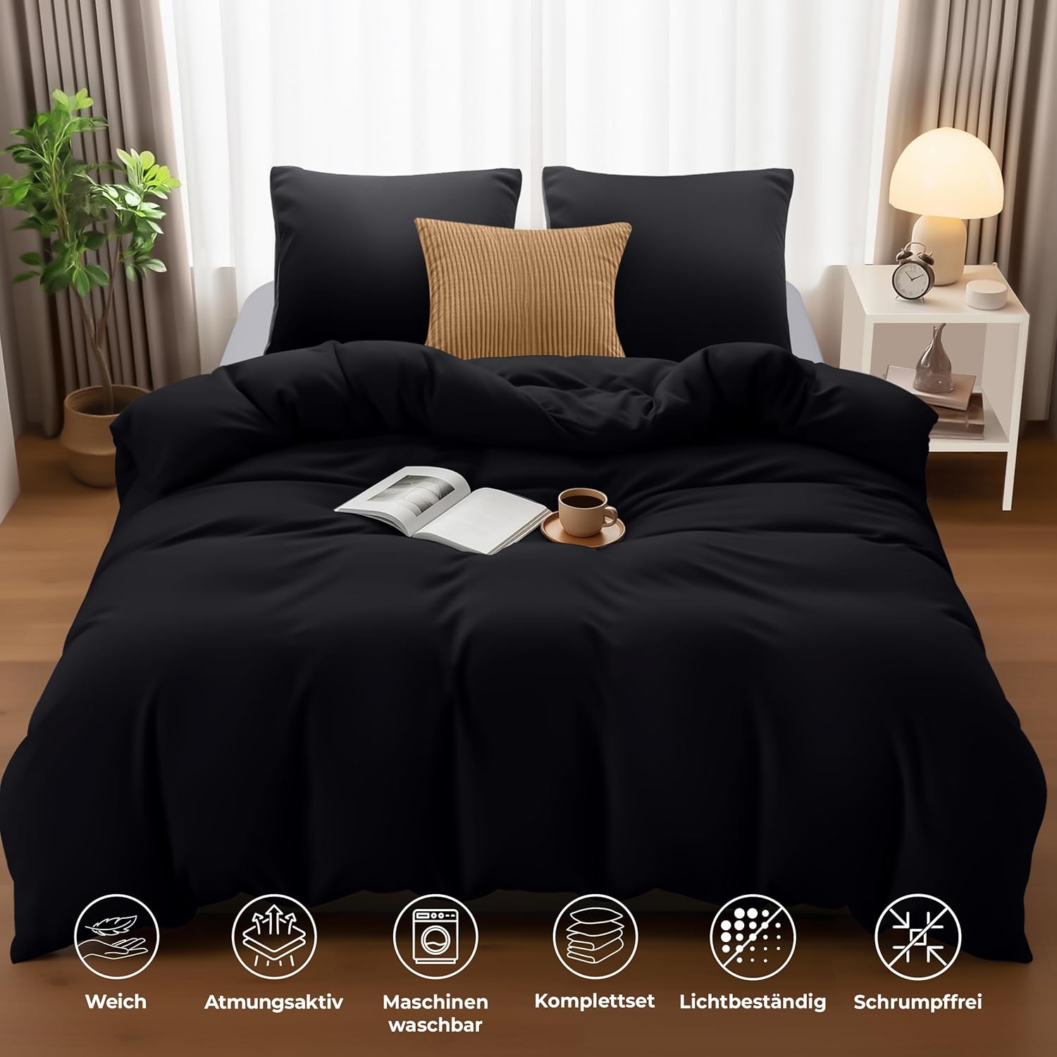 Постельное белье Utopia 200 x 200 см комплект, микрофибровый пододеяльник 200 x 200 см + 2 наволочки 80 x 80 см, черный