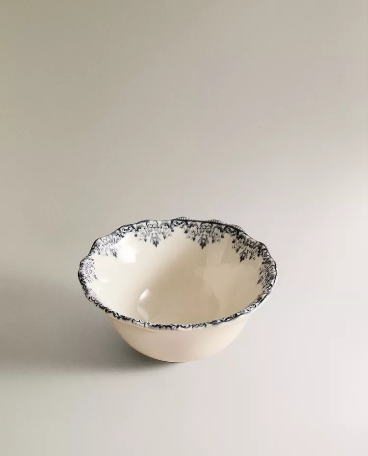 Глиняная мини-миска с декоративным узором и деталью по краю.