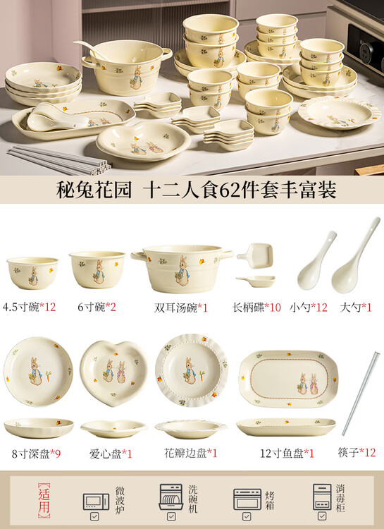 Secret Rabbit Garden керамический набор чашек и тарелок на 12 персон, 62 предмета, ассортимент