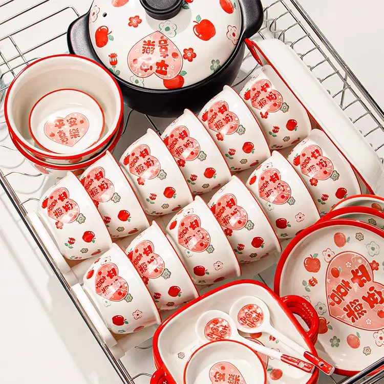 Pang'an Xile Набор керамических тарелок и мисок на 10 персон, 52 предмета, подарочная упаковка