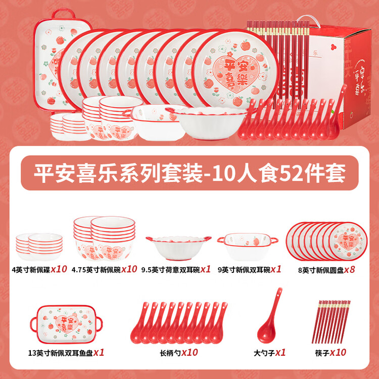 CERAMICS Набор керамических тарелок и мисок, Ping'an Xile на 10 персон, 52 предмета, подарочная упаковка
