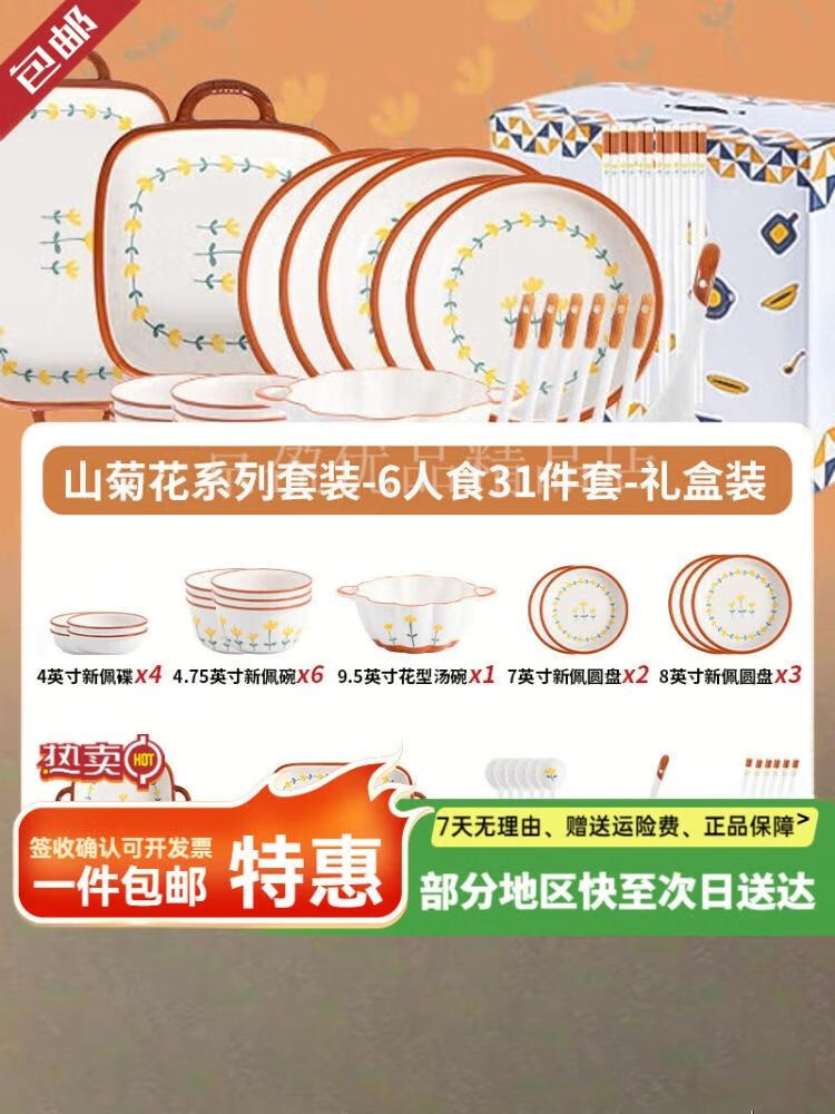 CERAMICS Chrysanthemum Керамический набор посуды на 8 персон, 31 предмет, подарочная упаковка