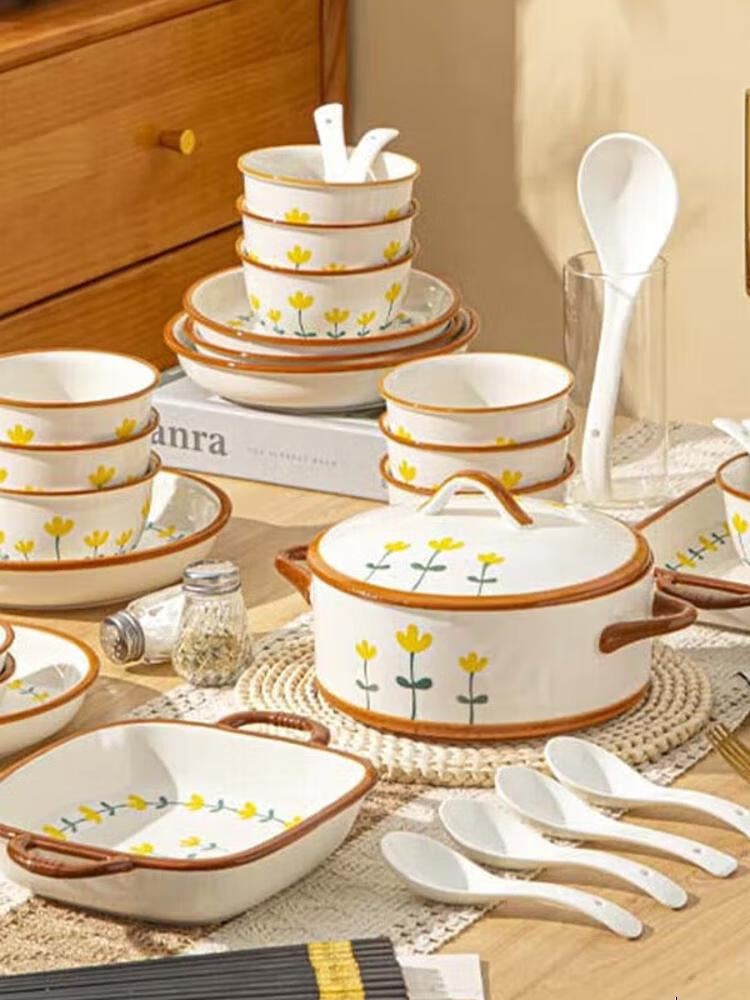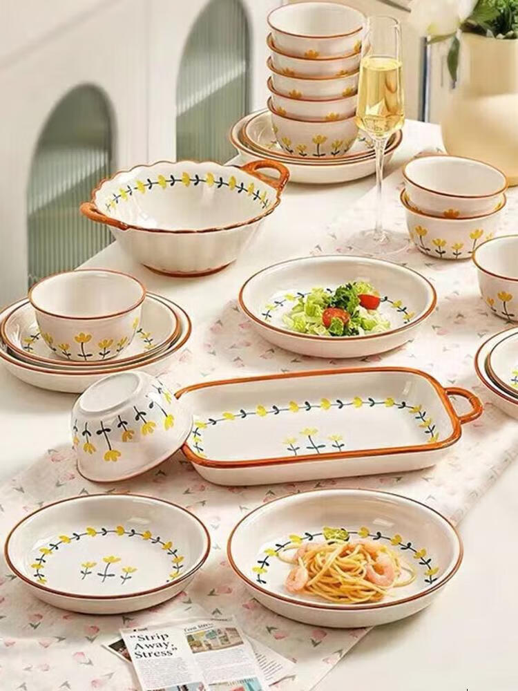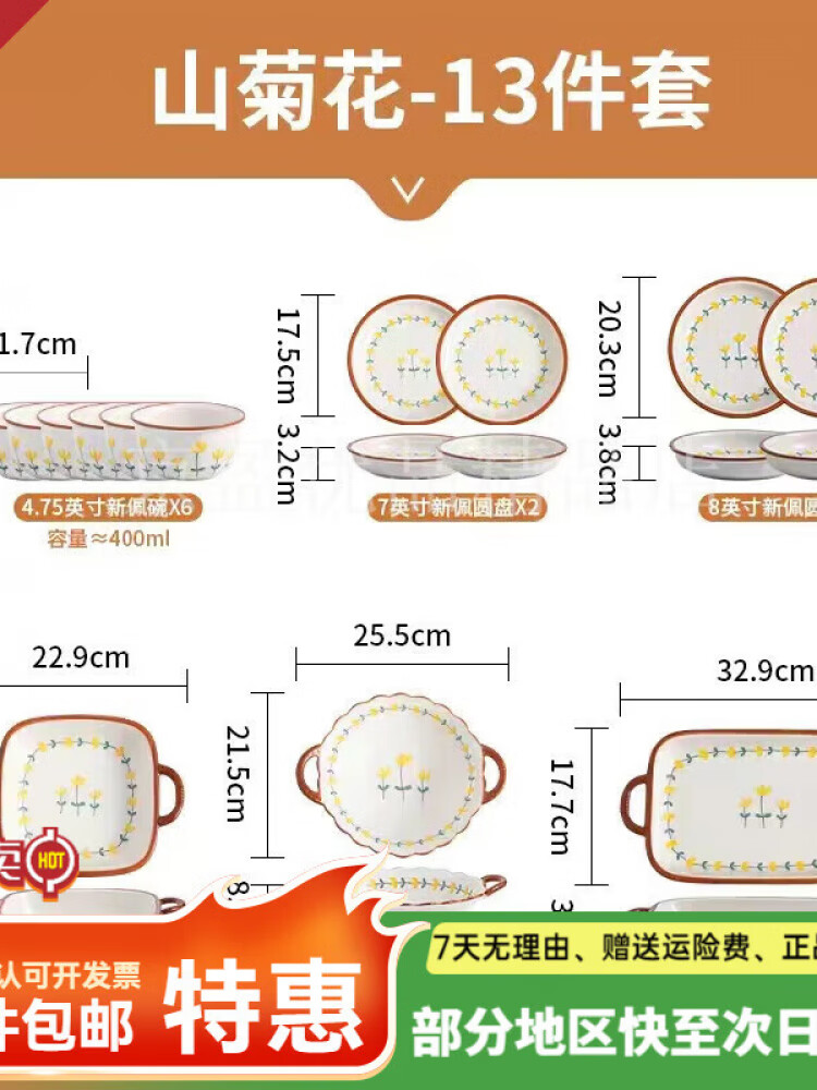 Ceramics Набор керамической посуды Chrysanthemum, 13 предметов, подарок на новоселье