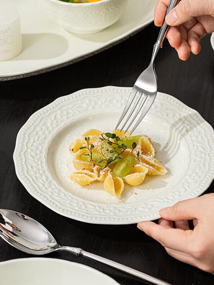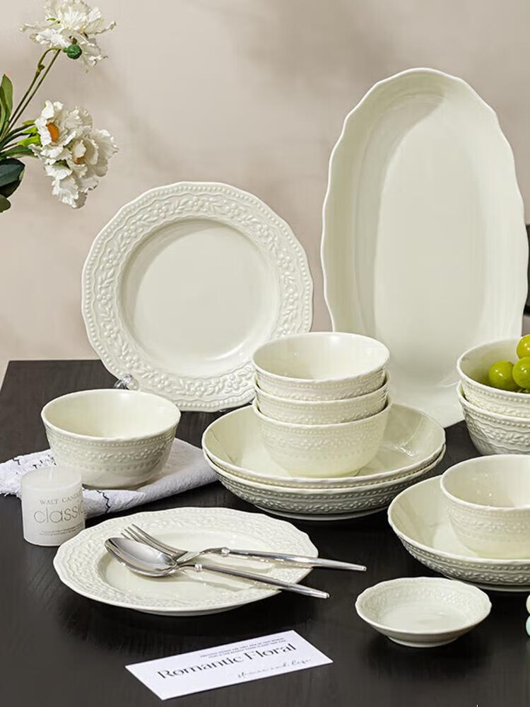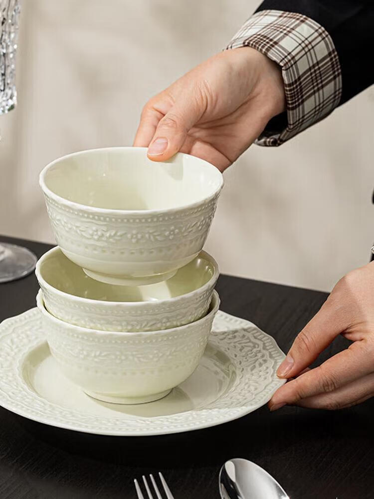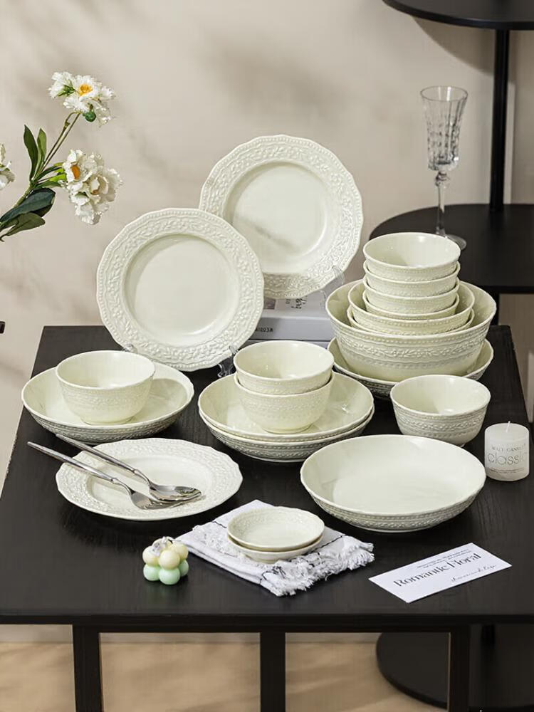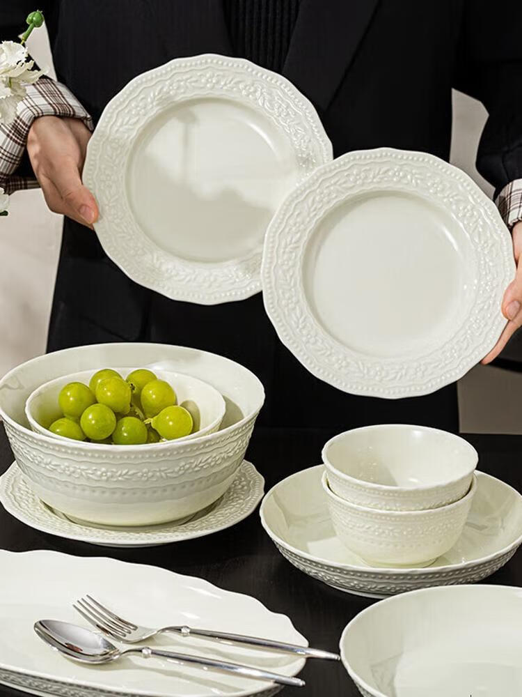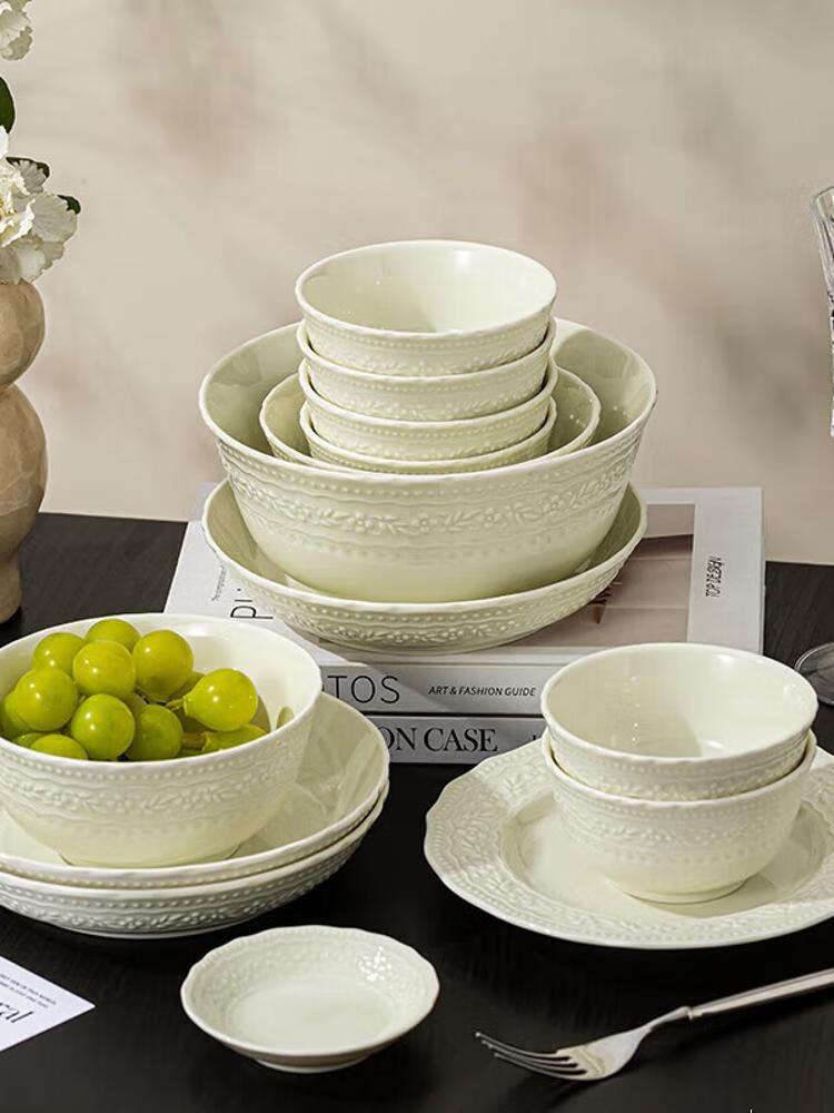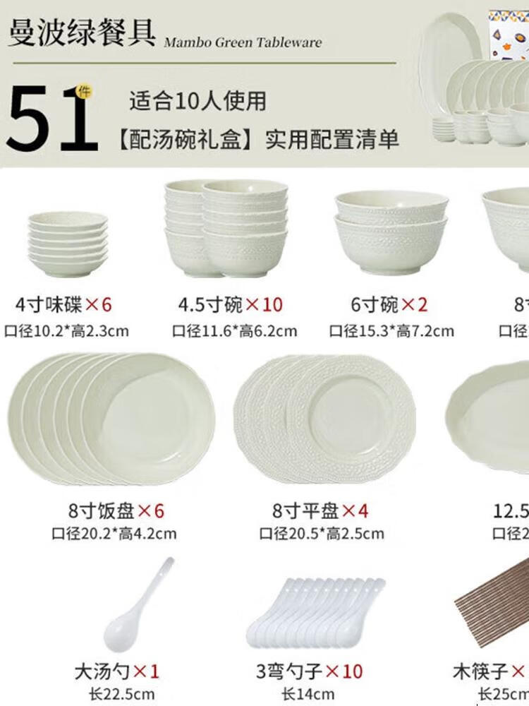 CERAMICS Embossed French Bowl And Plate Set, набор для 8 персон, 43 предмета, Manbo Green, [Value Pack] 14 564₽