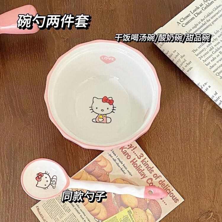 Ceramics Набор посуды Hello Kitty с мисками и ложкой, 3 предмета