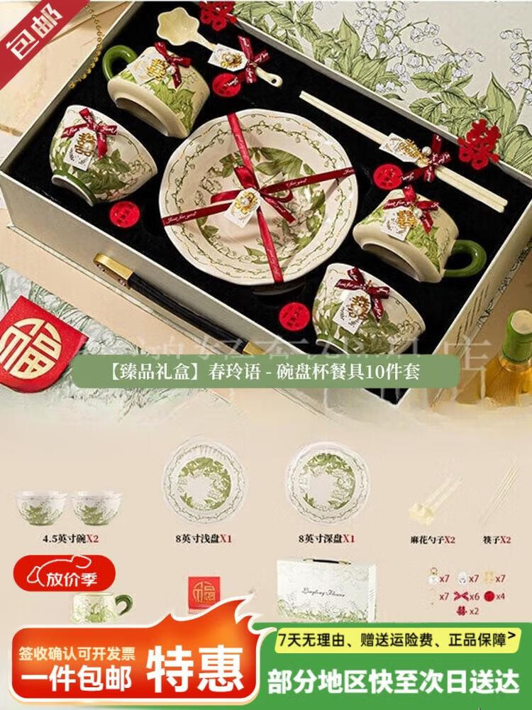 Тип товара: [Высококачественный подарочный набор] Десять красивых чаш, чашек и тарелок в комплекте - Chunlingyu