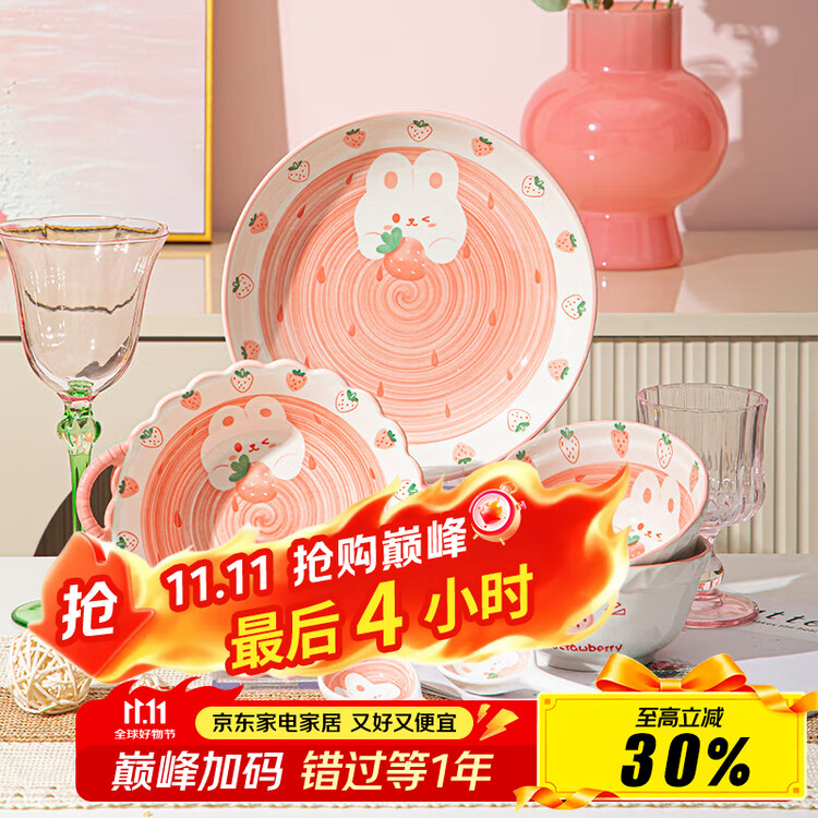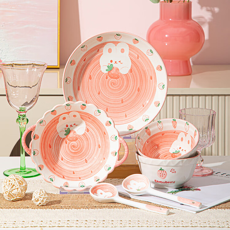 Ceramics Набор керамической посуды Underglaze Painted Strawberry Rabbit, 6 предметов для двоих