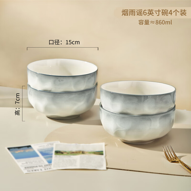 Ink color Набор керамических мисок для риса Underglaze, 4 предмета, 15 см, стиль 2025