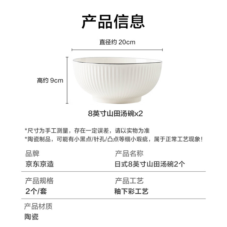 JD Original Пара керамических мисок Yamada 8 дюймов для супа, риса, лапши и салата