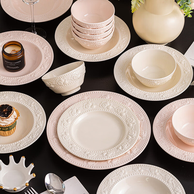 KANGMO набор керамических тарелок и мисок Relief Rose, песочный